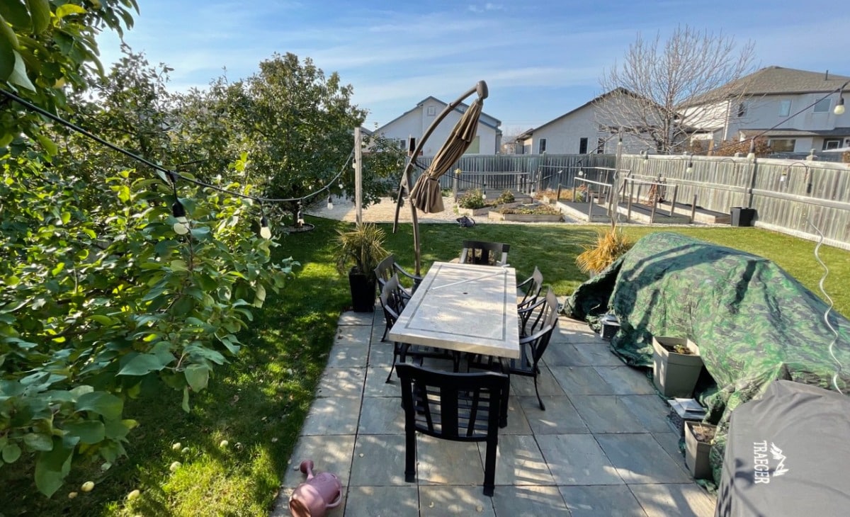 - Charming Patio & Fireplace: The heart of this backyard is a spacious paver patio featuring a beautifully crafted stone fireplace, adding warmth and character to the space.